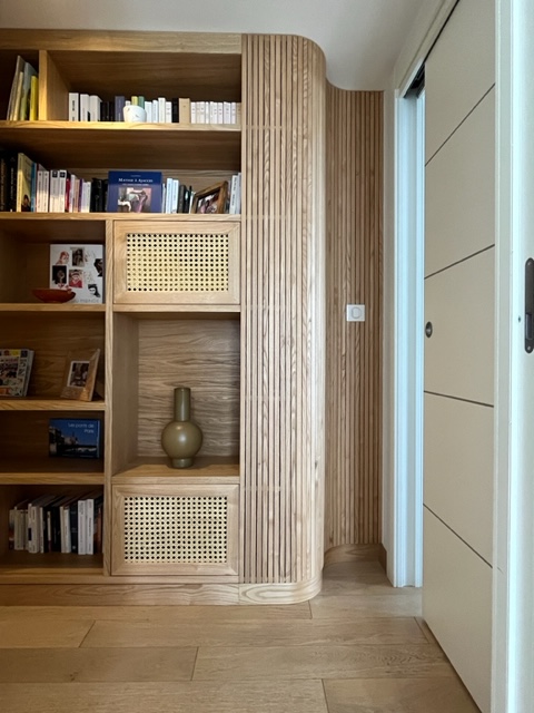 Conception d’une bibliothèque en bois dans un appartement Bastiais