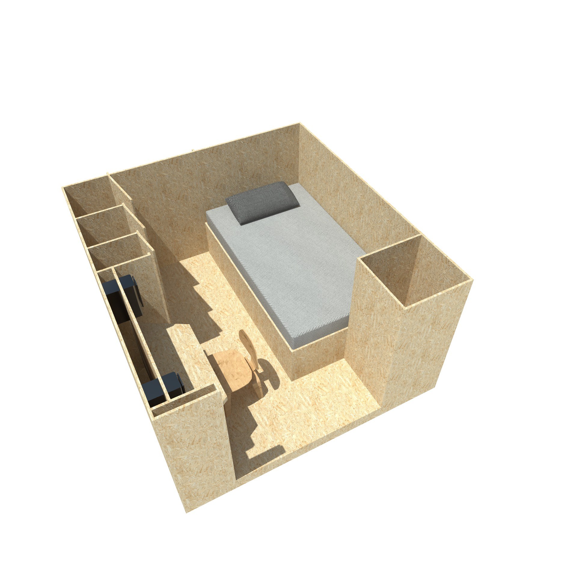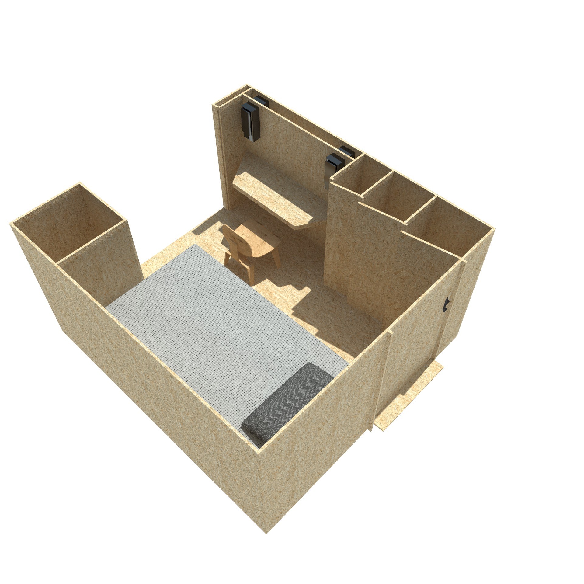 Prototype des box conçues intégralement en OSB